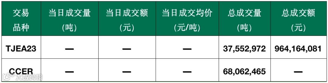 截至今日,天津碳市场配额累计成交37,552,972吨,成交金额964,164,081元;CCER累计成交68,062,465吨。