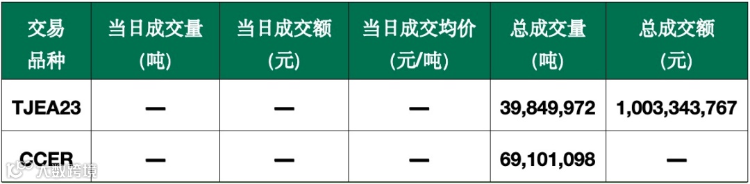 截至今日,天津碳市场配额累计成交39,849,972吨,成交金额1,003,343,767元;CCER累计成交69,101,098吨。