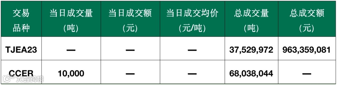 截至今日,天津碳市场配额累计成交37,529,972吨,成交金额963,359,081元;CCER累计成交68,038,044吨。