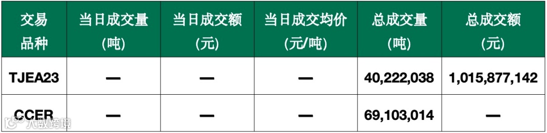 截至今日,天津碳市场配额累计成交40,222,038吨,成交金额1,015,877,142元;CCER累计成交69,103,014吨。