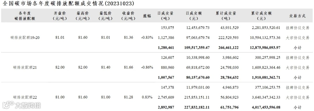 截至今日,全国碳市场碳排放配额累计成交量356,997,550吨,累计成交额18,803,521,052.76元。