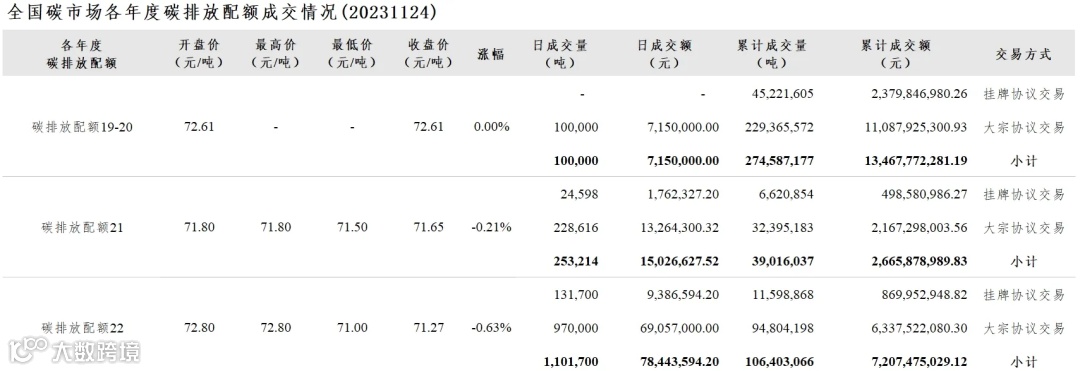 截至今日,全国碳市场碳排放配额累计成交量420,006,280吨,累计成交额23,341,126,300.14元。