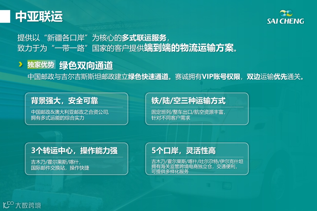 目前,中国邮政已与吉尔吉斯斯坦邮政建立绿色双向通道,旨在解决双边口岸拥堵问题。赛诚拥有VIP权限,大大缩短在口岸排队等候时间,提高过关效率。同时配合口岸内的保税区操作,充分发挥两国合作优势,使得绿色通道发挥其作用,提高两国双边贸易以及以吉尔吉斯斯坦经转至其他路向的高效口岸。