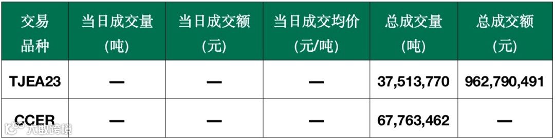 截至今日,天津碳市场配额累计成交37,513,770吨,成交金额962,790,491元;CCER累计成交67,763,462吨。