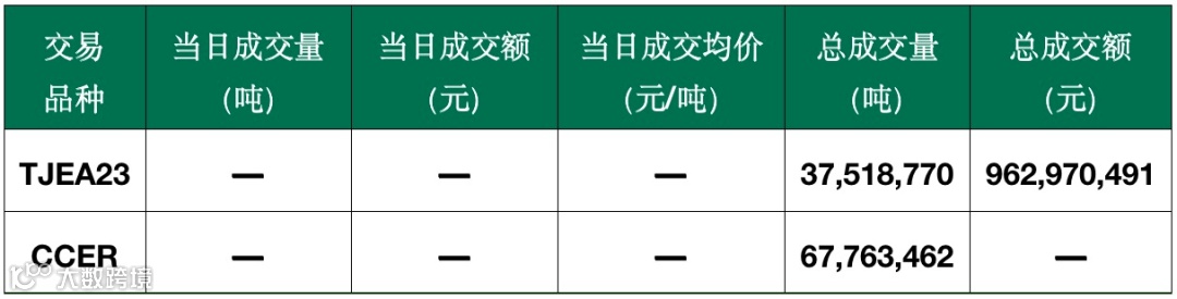 截至今日,天津碳市场配额累计成交37,518,770吨,成交金额962,970,491元;CCER累计成交67,763,462吨。