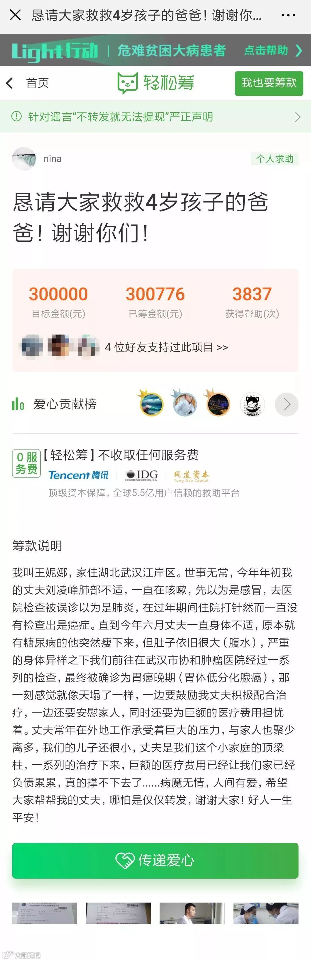 但在这个故事的背后,嗯你没猜错了,重症恶疾的背后总会有一个XX筹的故事。哪怕是事业有成的人。