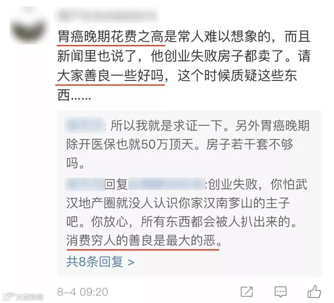 更有网友认为,知名地产策划就是牛,病了还给自己策划了一场轰动全国的感动事件。