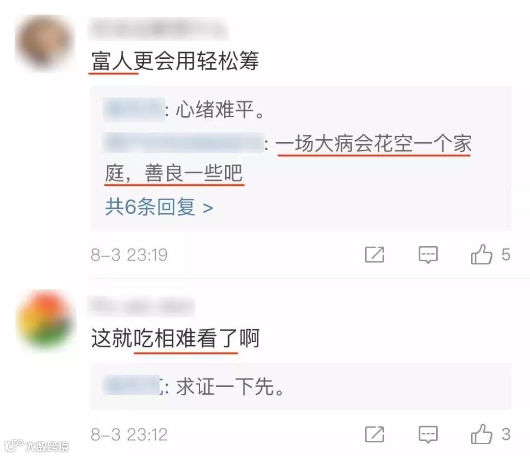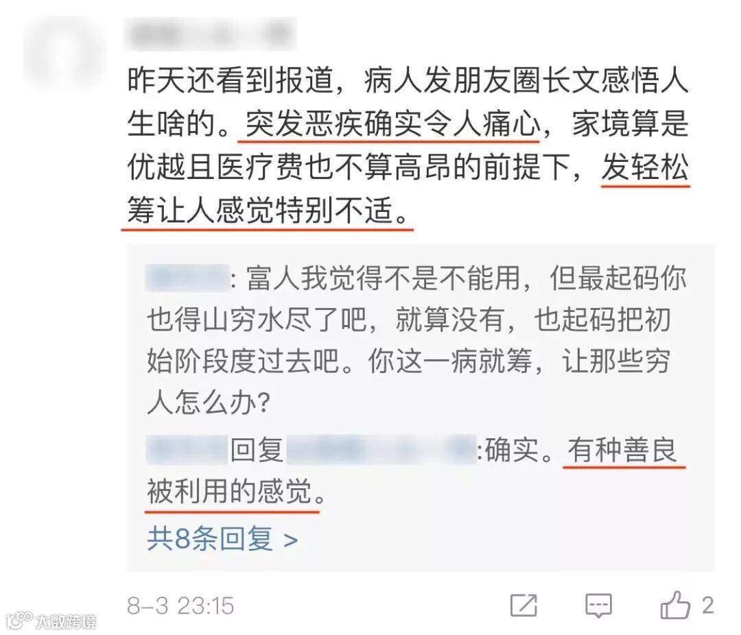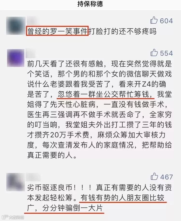 有网友认为,真正有需要的人没资本发起众筹,而有钱有势(有能力)的人朋友圈比较广,分分钟骗倒一大片。