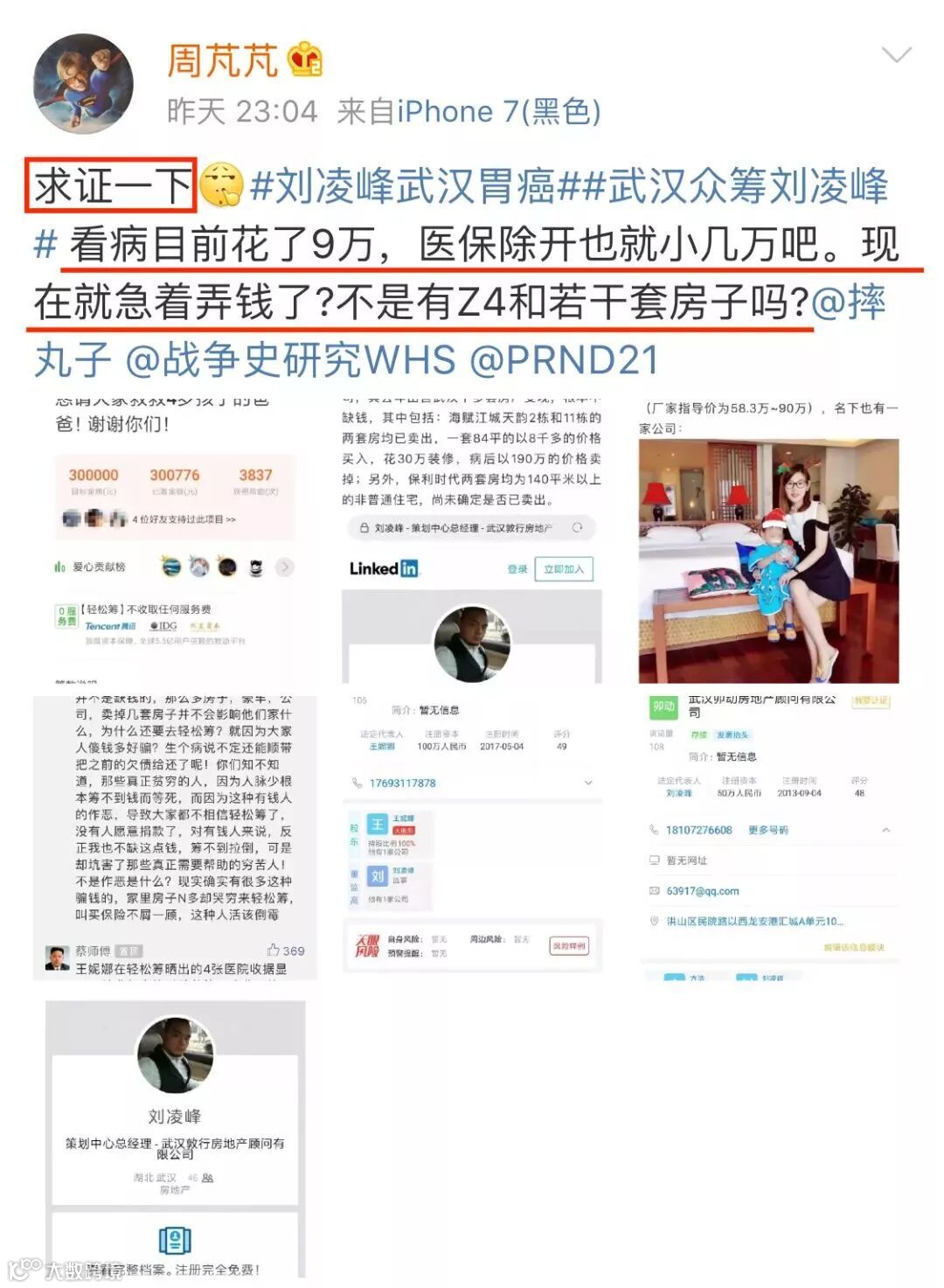 网友说:刘凌峰去年出售武汉十多套房产变现,根本不缺钱。