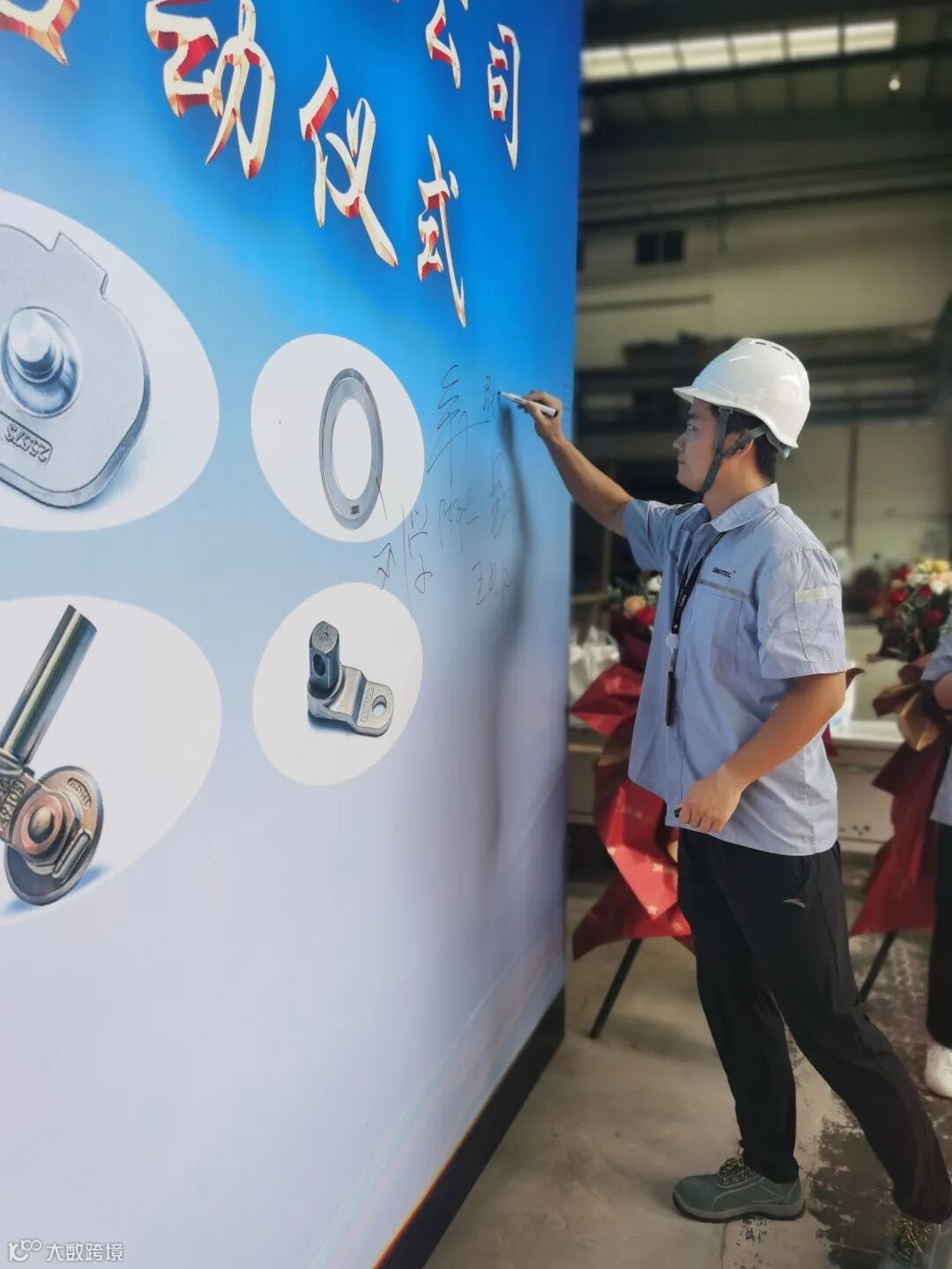 最后,参会人员聚集在签名板前拍照留念,砂铸车间点火仪式圆满结束。