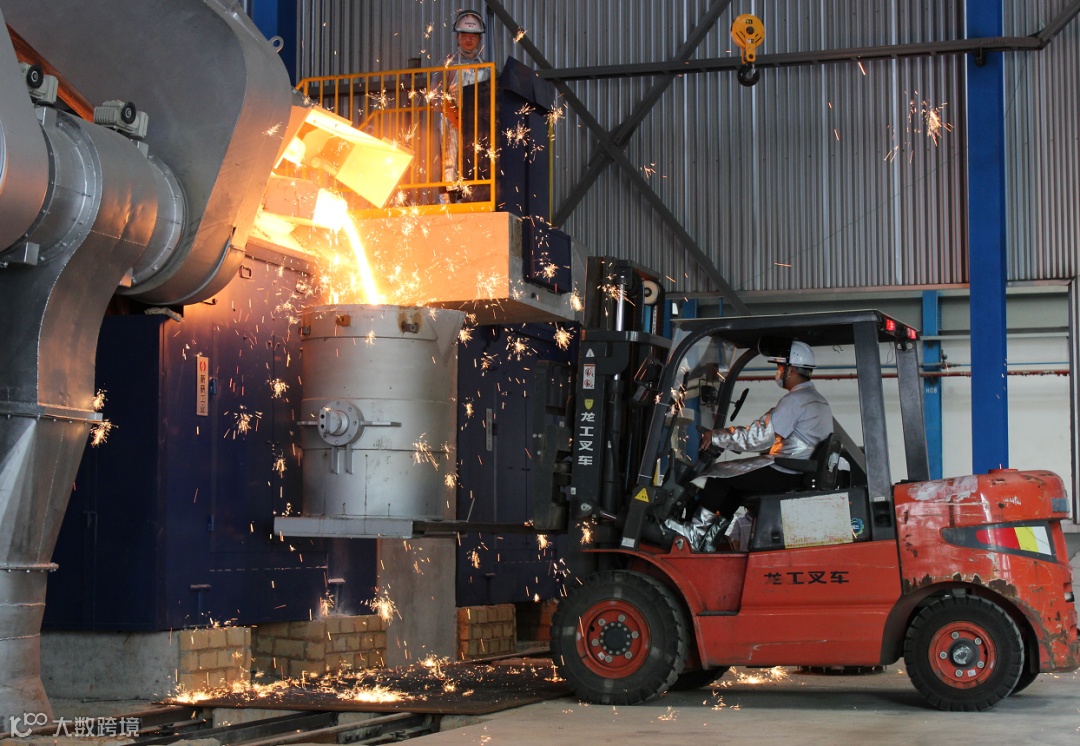 10点15分,随着鞭炮声再次响起,大家共同见证了砂铸车间电炉的第一炉铁水出炉,现场火花四溅,十分绚丽。