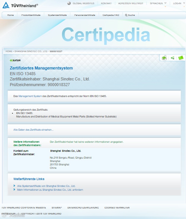上海工厂为首次获得医疗体系认证,该认证的通过,意味着上海工厂可具备在医疗领域铸造机加类产品的生产和销售资格,消除了贸易壁垒,使我司取得进入国际医疗市场的通行证,有利于増强企业产品的竞争カ,提高产品的市场占有率。此认证的取得为我司向医疗领域进军开具了一张绿色通行证,新的业务增长点的愿景也愈加清晰。