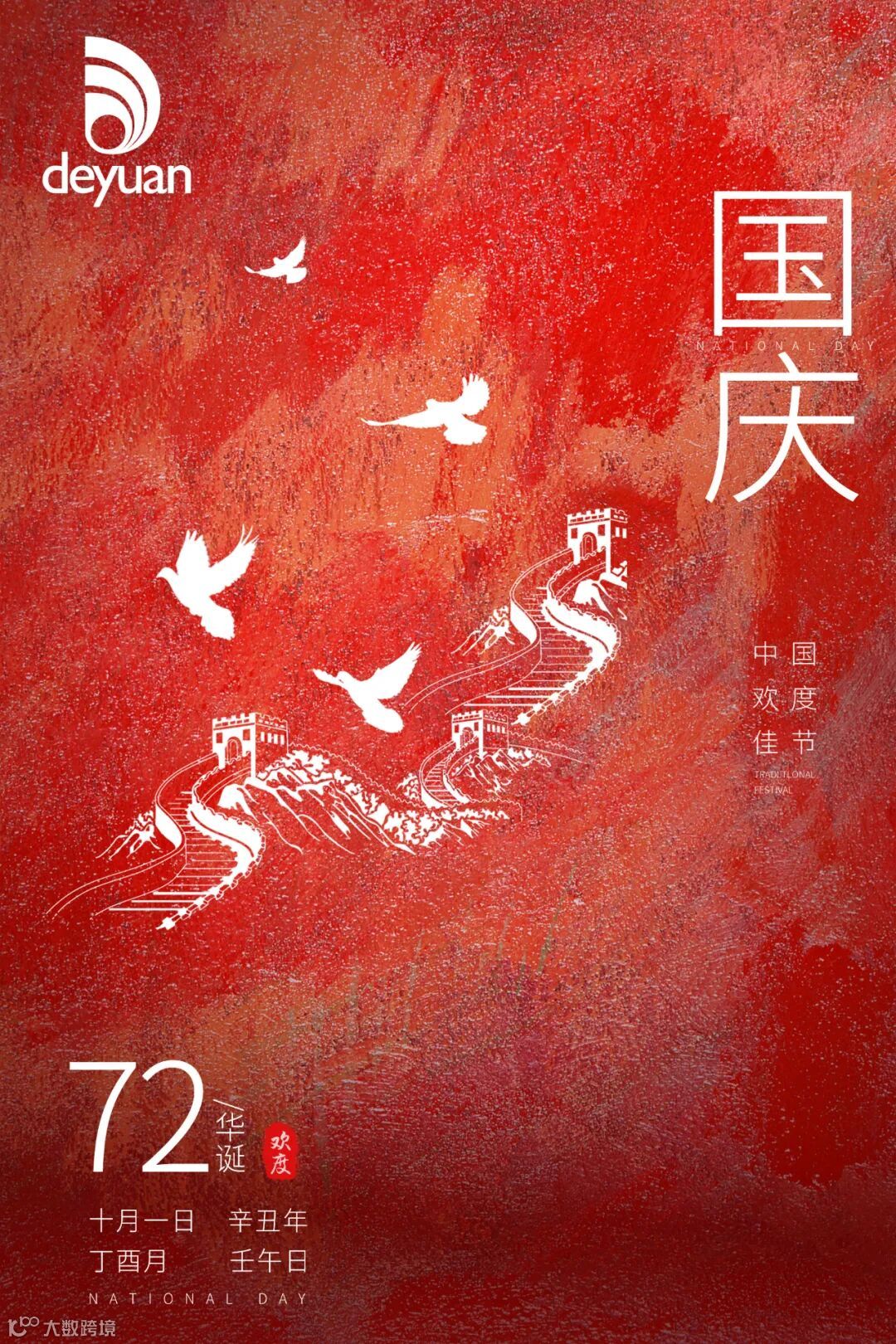 正值祖国即将迎来七十二岁华诞,全体德源人怀着无比激动的心情,以此项科技成果向我们伟大的祖国献礼,祝福伟大的祖国母亲生日快乐!繁荣昌盛!