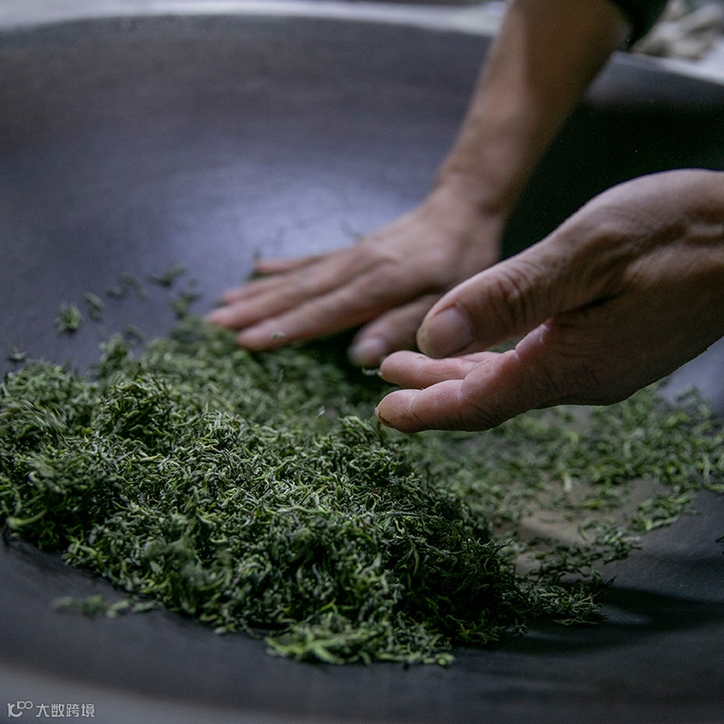 制茶师的双手和茶青在炙热的锅面上或高或低地舞动着,