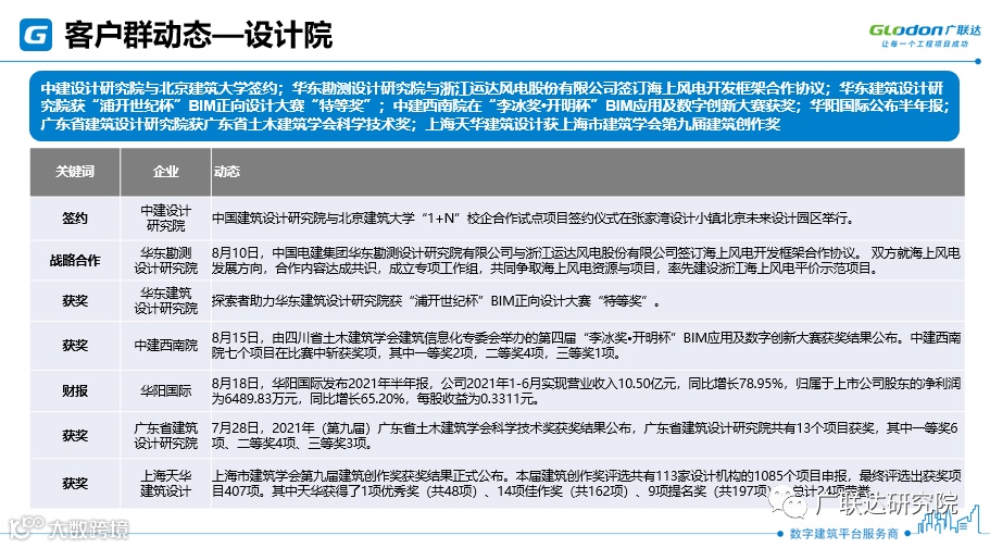 3.设计院:中建设计研究院与北京建筑大学签约;华东建筑设计研究院获“浦开世纪杯”BIM正向设计大赛“特等奖”;广东省建筑设计研究院获广东省土木建筑学会科学技术奖;上海天华建筑设计获上海市建筑学会第九届建筑创作奖。