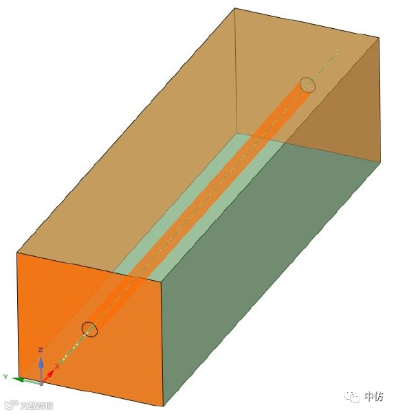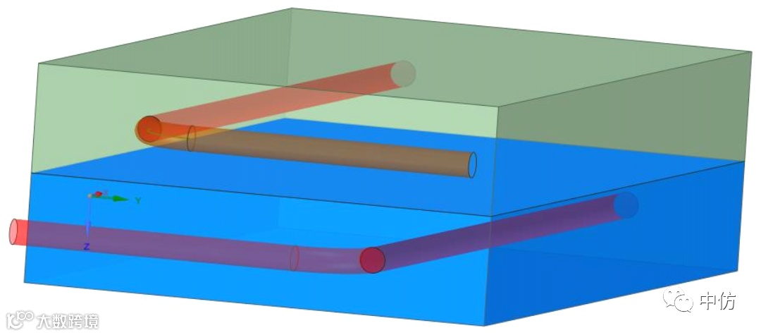 热管基于FloCAD建立,本例中建立了常数热导热管,并将其在轴向上分成了55个单元,即每厘米一个单元。通过定义中心线和热管参数,软件可以快速完成热管建立,如下图所示。另外,软件中还支持在油和PCM区域之间定义一个边界节点来使求解更为精确。