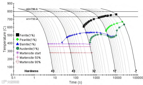 图3 17CrNiMo6 钢的 CCT 曲线
