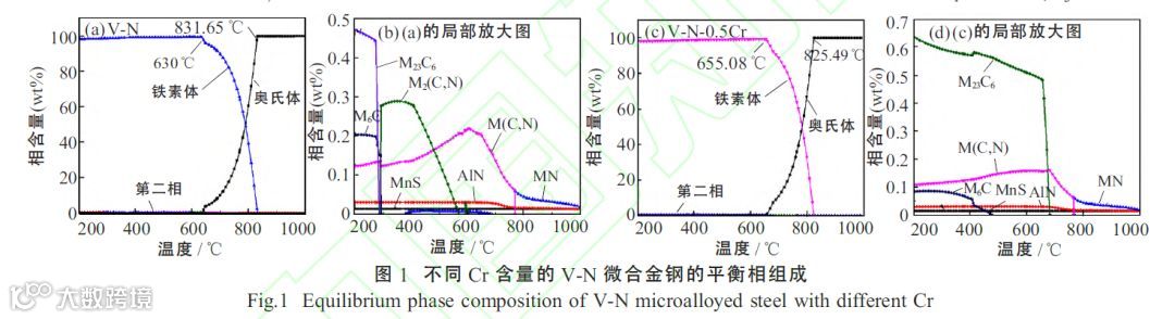 图1为不同Cr含量的V-N微合金钢的平衡相组成。