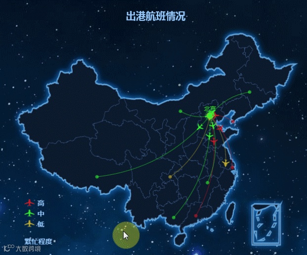 从北京出港的飞机不是一条直线,而是接近于圆弧。