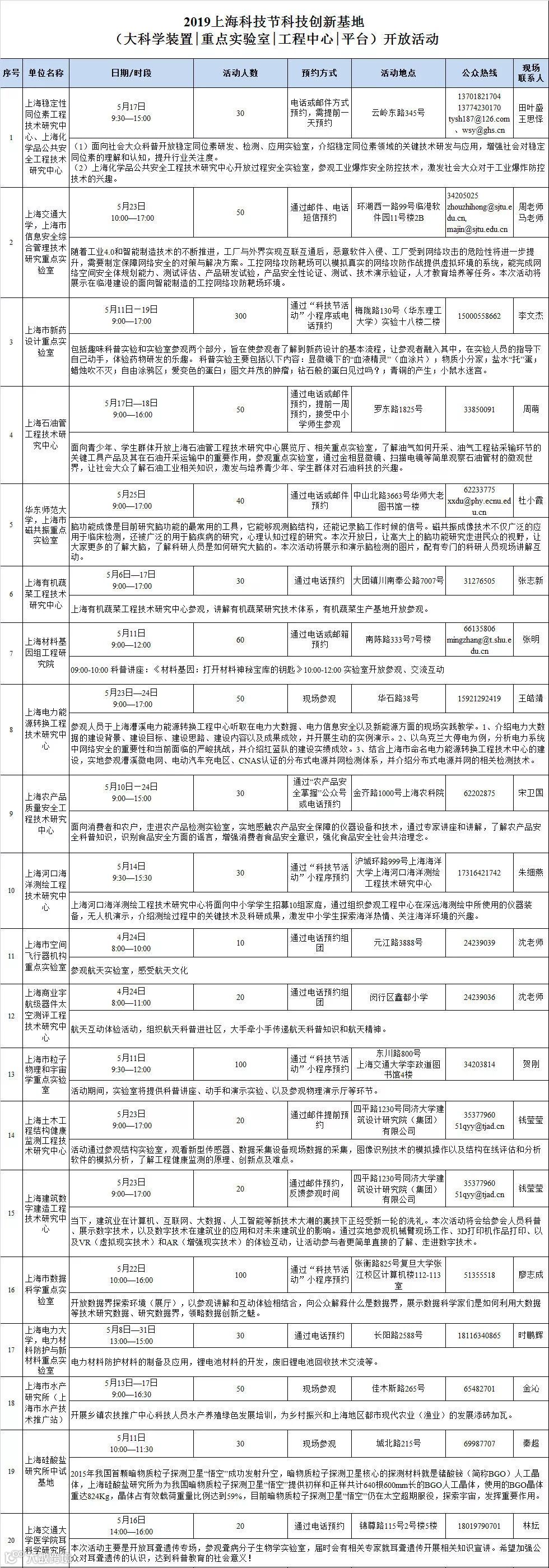 开放的科技创新基地(大科学装置、重点实验室、工程中心、平台等)活动,均为免费公益活动。