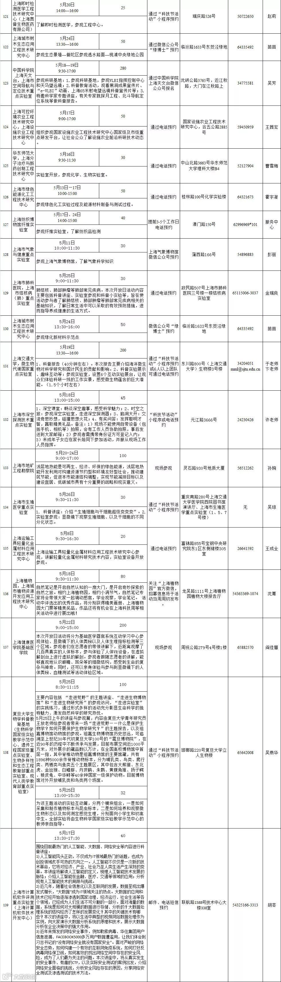 在惠民版块,更多的科普教育基地和科技创新基地向公众开放。其中,全市将有300余家科普教育基地向公众免费或者优惠开放(名单即将公布);100余家重点实验室、工程技术研究中心等科技创新基地(详见上表)向公众开放,邀请公众走进实验室,感受科学的魅力,拉近科技和公众的距离。