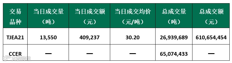 天津今日配额线上成交13,550吨,成交金额409,237元,成交均价30.20元/吨。