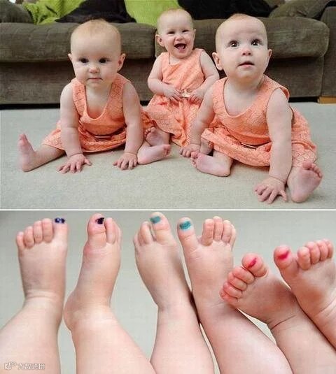 这个有意思,靠涂指甲区分三胞胎!