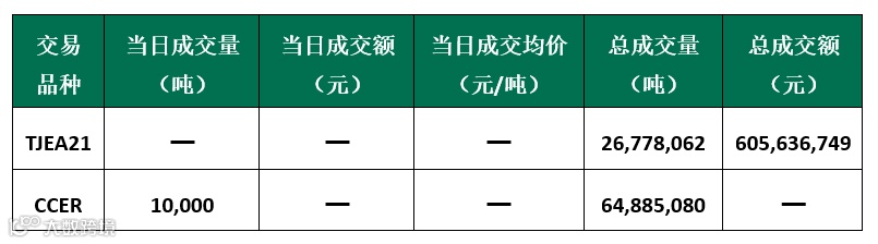截至今日,天津碳市场配额累计成交26,778,062吨,成交金额605,636,749元;CCER累计成交64,885,080吨。