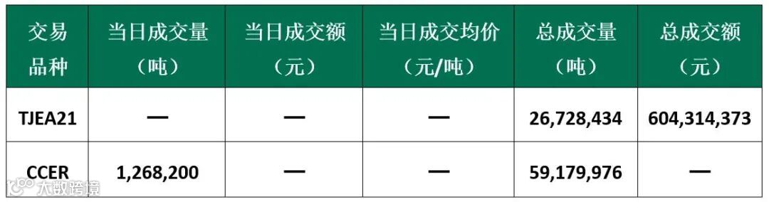 截至今日,天津碳市场配额累计成交26,728,434吨,成交金额604,314,373元;CCER累计成交59,179,976吨。