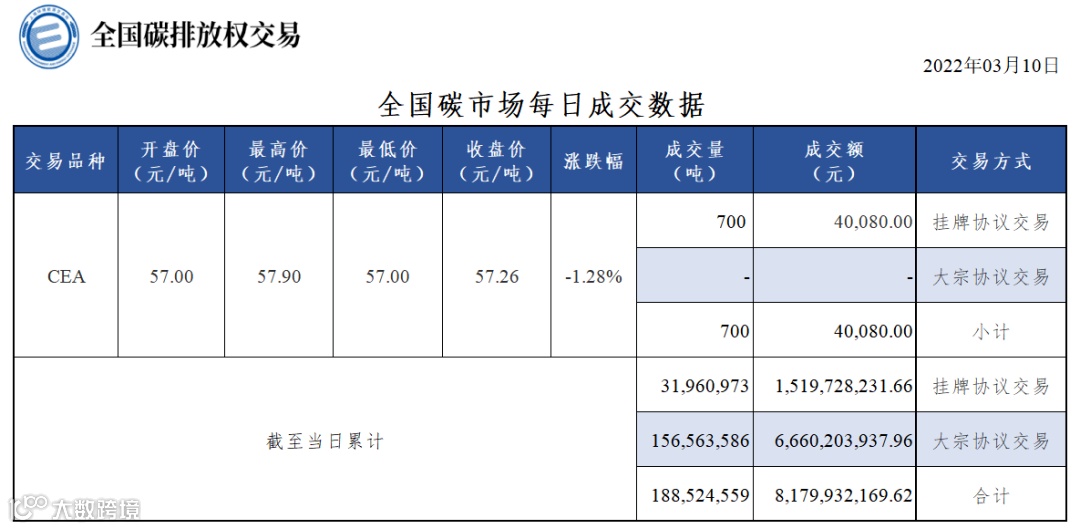 截至今日,全国碳市场碳排放配额(CEA)累计成交量188,524,559吨,累计成交额8,179,932,169.62元。