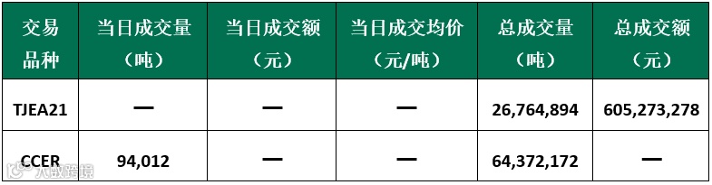 截至今日,天津碳市场配额累计成交26,764,894吨,成交金额605,273,278元;CCER累计成交64,372,172吨。