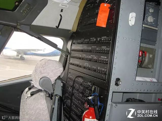 在驾驶员的座椅后面,有一大片的断路开关,密密麻麻。然后我们还可以看到一个灭火器。