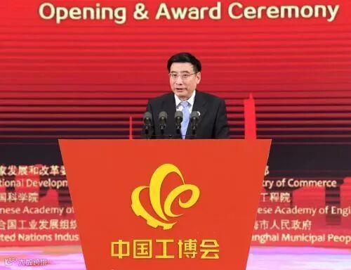 开幕式上,第十届全国政协副主席、中国工程院主席团名誉主席徐匡迪颁发第二十届工博会特别荣誉奖,工业和信息化部部长苗圩、中国工程院院长李晓红分别讲话。