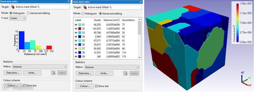 报告功能可以快速统计分析Mask颗粒特征或者多标签Mask特征。报告可以导出为PDF、HTML格式或者暂存于剪切板。中心线统计分析添加了一系列的新功能,包括最大/小截面面积,等效圆,外接圆,内切圆等。