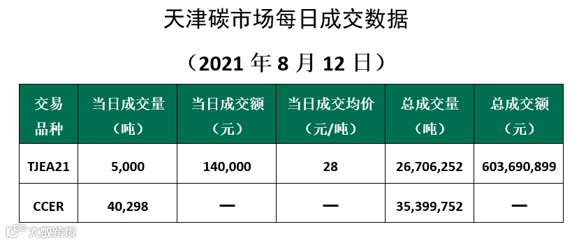 截至今日,天津碳市场配额累计成交26,706,252吨,成交金额603,690,899元;CCER累计成交35,399,752吨。
