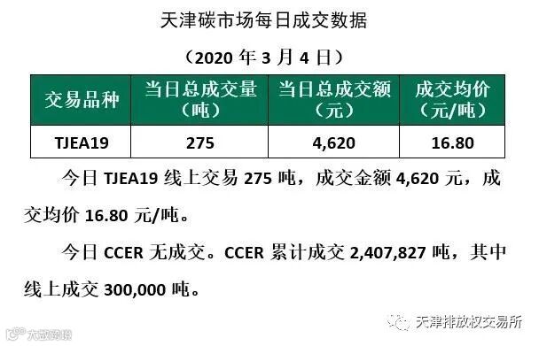 2020年3月4日天津碳市场成交公告