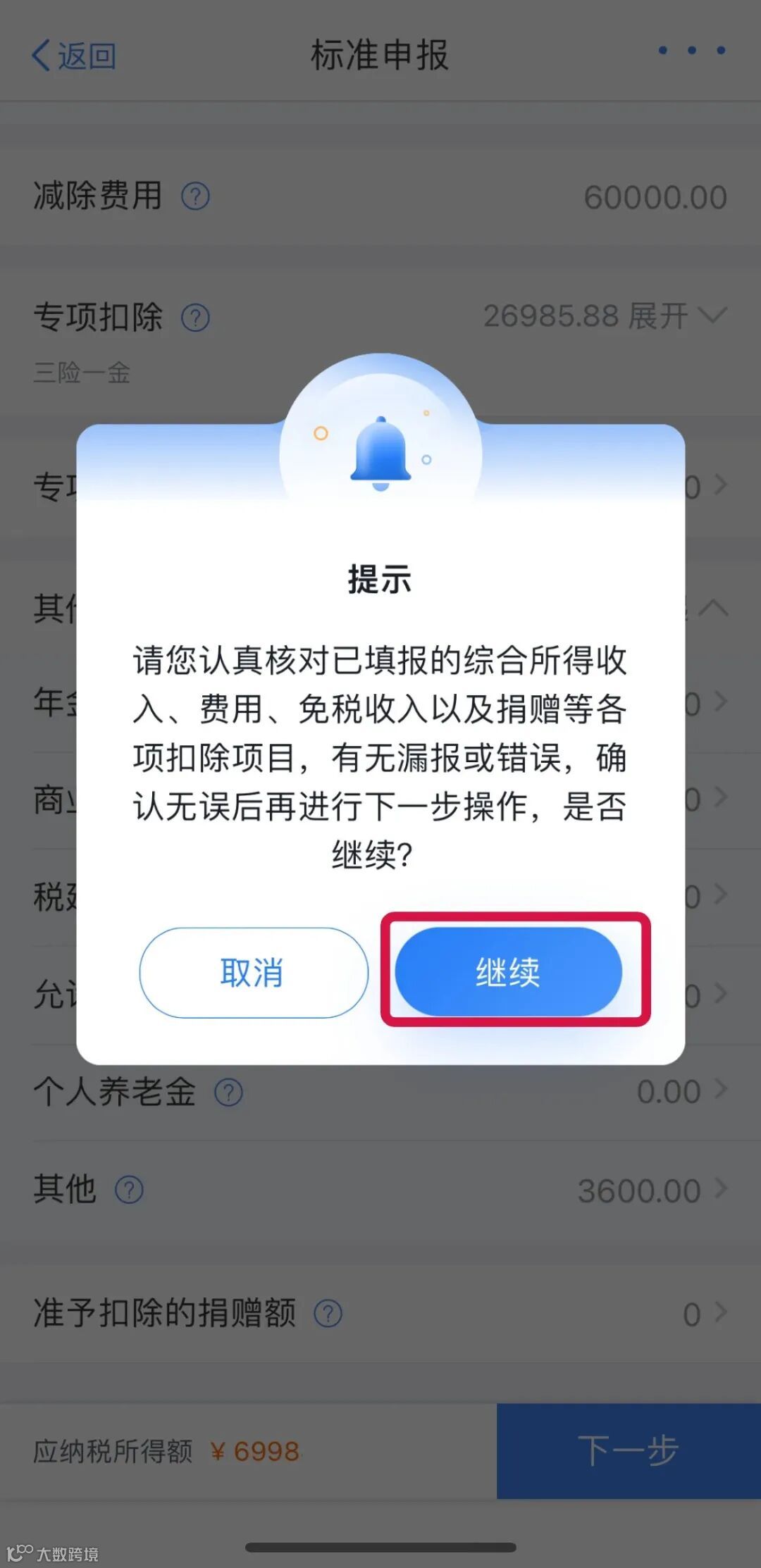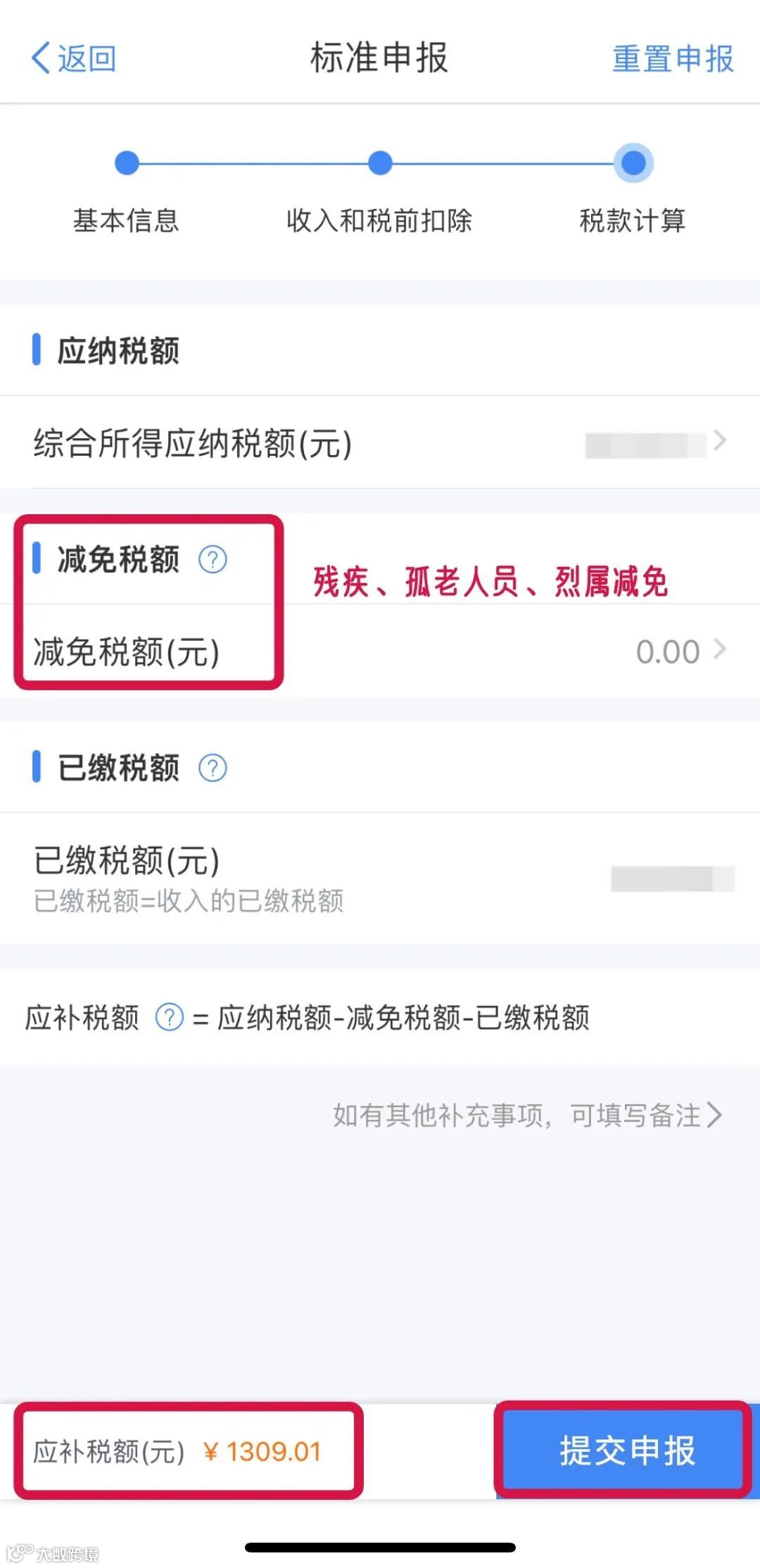 注意:如果您需要补税,但年度综合收入不足12万元,或汇算应补税额≤400元,且依法预缴税额的,可点击【享受免申报】。