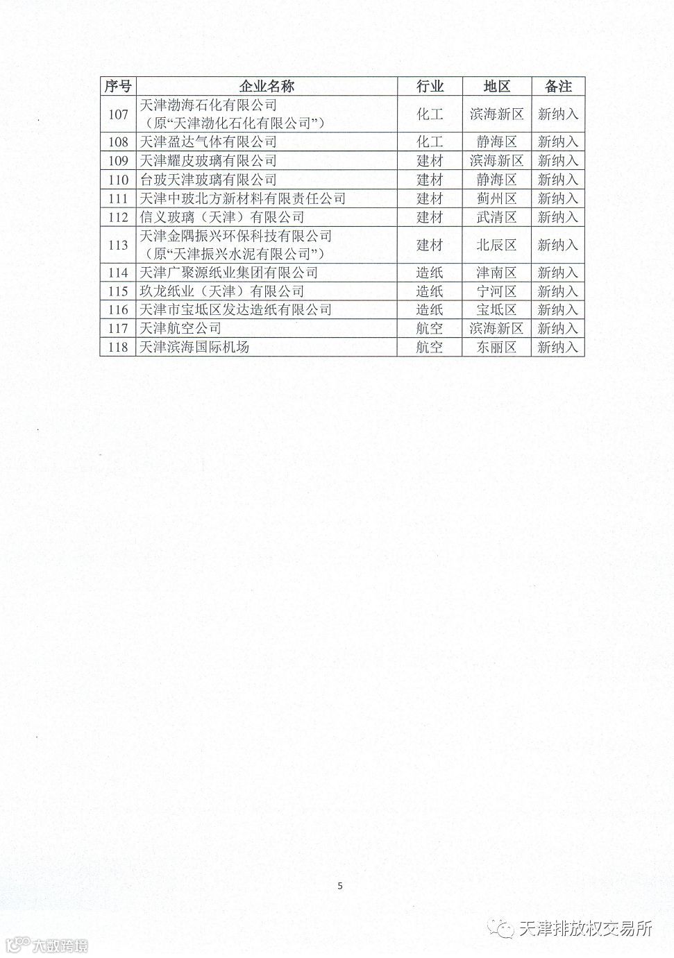 天津市生态环境局关于公开征求天津市碳排放权交易试点纳入企业名单意见的通知