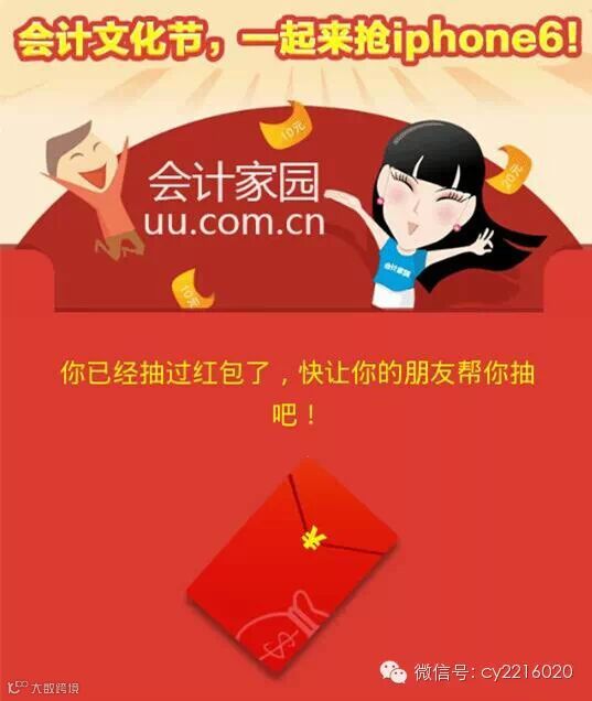 导读:会计文化节,活动已经正式拉开帷幕,点击打开后,分享到自己的朋友圈,邀请朋友为您抢红包,大家一起抢购iphon