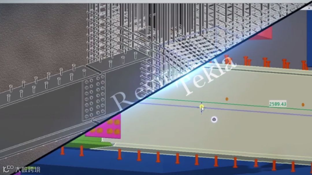 钢结构模型的应用:本项目型钢混凝土框架柱结构设计中无型钢连接粱加之梁、柱接头部位节点复杂,吊装精度控制难度大,项目部BIM团队协同钢结构专业公司利用Revit及Tekla软件建立完整的钢结构模型,并对结构难点及施工重点部位提前深化设计,将BIM模型与动画渲染技术结合,进行预拼装与虚拟定位测控,并通过3D可视化交底指导现场施工。