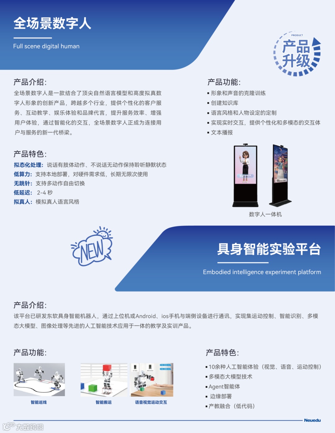 人工智能与大数据行业发展迅猛,健康医疗产业也因社会老龄化趋势而日益受到关注。东软教育积极应对人工智能时代的高校教育教学需求,将展出包括人工智能素养课程、全场景数字人在内的人工智能方向系列产品,以及全面覆盖人工智能、大数据及康养领域的高质量教学资源产品。