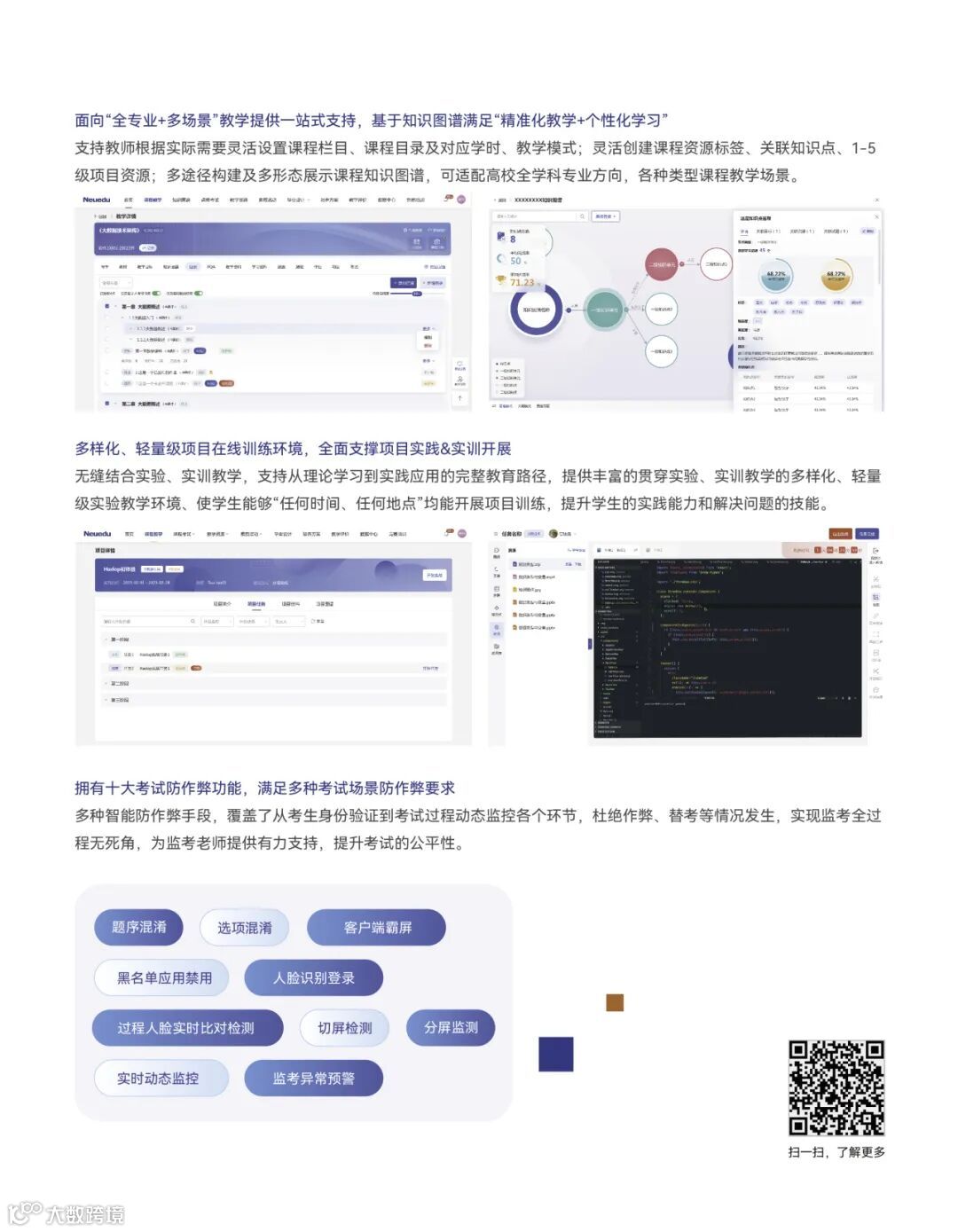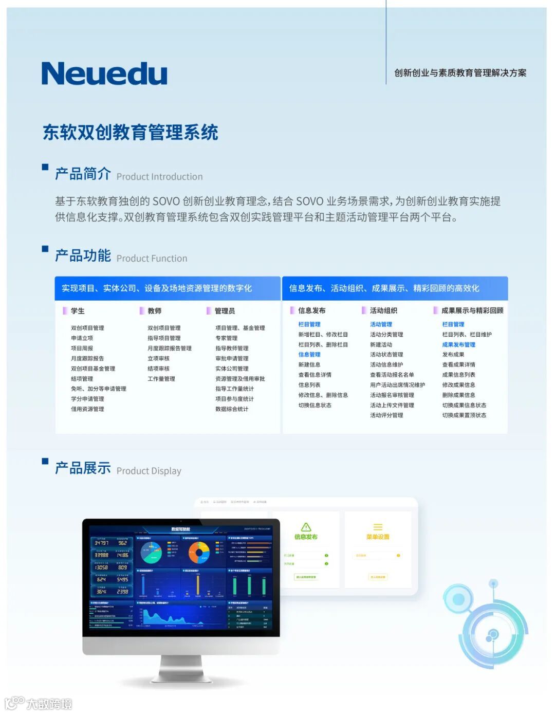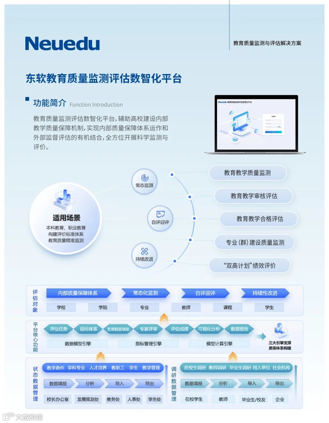 聚焦数字化人才培养,依托4S产品服务体系,东软教育构建了一体化智慧教育平台和系列软件产品。重磅推出——东软智慧教育平台,面向高校的一站式数字化平台,聚焦“数-学-管-训-评"典型应用场景,将数字技术深度融入专业人才培养全过程,助力高校数字化转型。此外展出涵盖教育质量保障、双创素质教育、学生综合服务等领域的多款教育管理软件,赋能院校高质量发展。