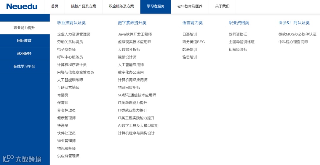 以东软产业优势、技术积淀与教育实践为依托,以三所大学、全国交付网络、在线教育平台及人力资源服务为支撑,构建了具有东软特色的继续教育服务体系。我们的各类短期培训业务,截至目前业务范围已拓展到全国26个省市,获得省级以上资质80余项,充分发挥OMO教育模式的优势,研发并推出了以东软教育在线、东软IT云学堂在内的多个在线教育平台,构建“在线课程+实践实训+就业创业”的线上线下教育生态。截至2023年底,在线学习平台累计注册用户超过200余万人。