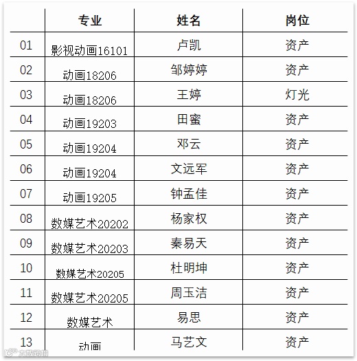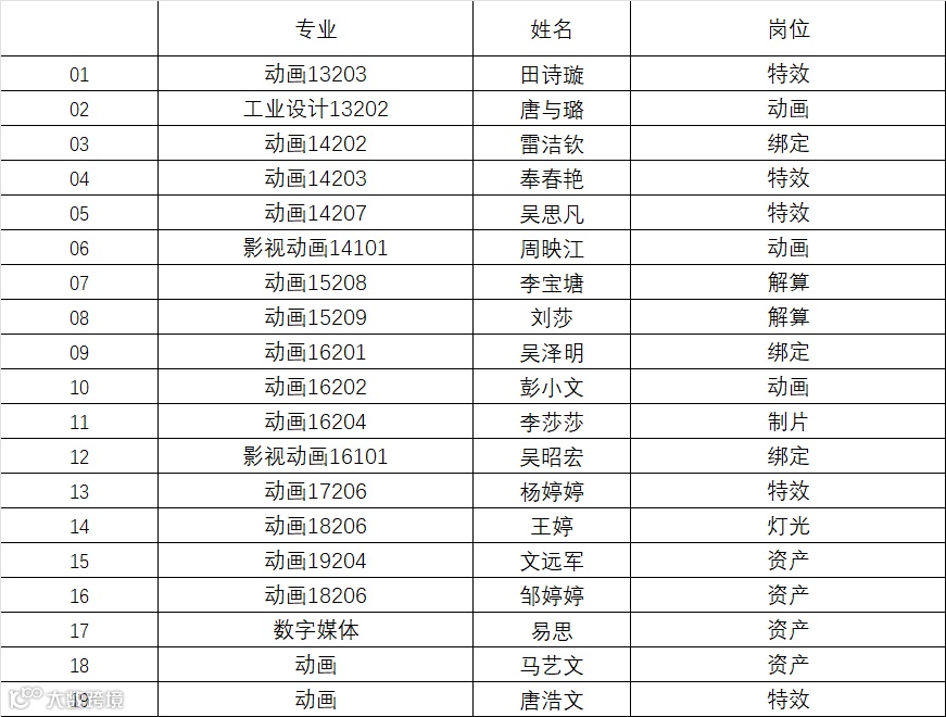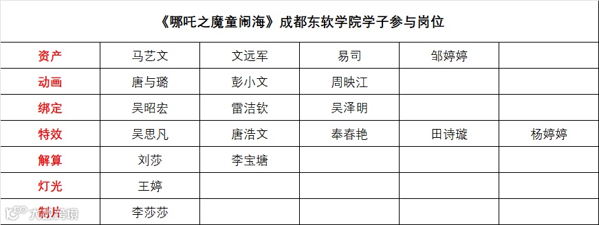 此次《哪吒2》的制作中,成都东软学院共有19名学生深度参与了7个岗位的工作,展现了学校学子的专业素养与创新能力。以下是参与项目的学生名单: