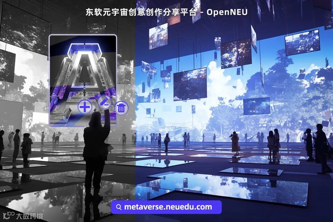 东软元宇宙创意创作分享平台-OpenNEU为师生和行业人员提供了一个元宇宙沉浸式共享空间,以UGC的形态构建个性化、便捷化、精准化的三维私域展示环境。