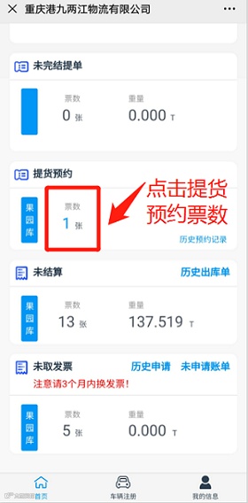 1、司机在线上换票成功后,可在微信公众号查看电子出库单。点击【未结算】票数,进入出库单列表。