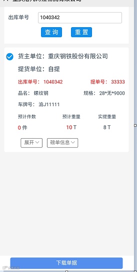 1、系统提供电子出库单以及电子磅单的下载功能。