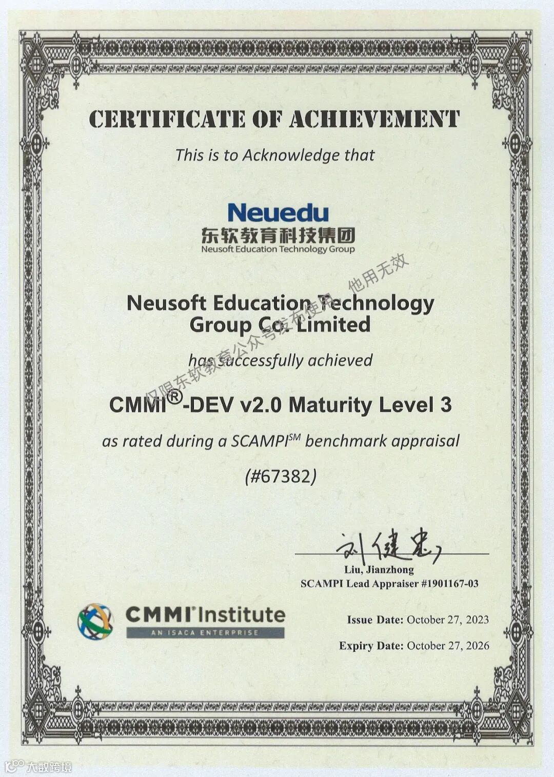 近日,东软教育科技集团(09616.HK)顺利通过CMMI3级认证,这是对东软教育在软件研发能力、服务交付质量等方面的国际权威认可,标志着东软教育的软件工程和质量管理进入了全新阶段,综合实力和核心竞争力均得到进一步提升。