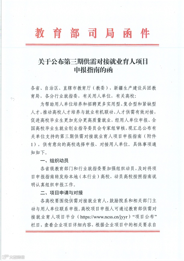 目前,供需对接就业育人项目已在教育部供需对接就业育人项目平台发布,欢迎各大高校积极申报。