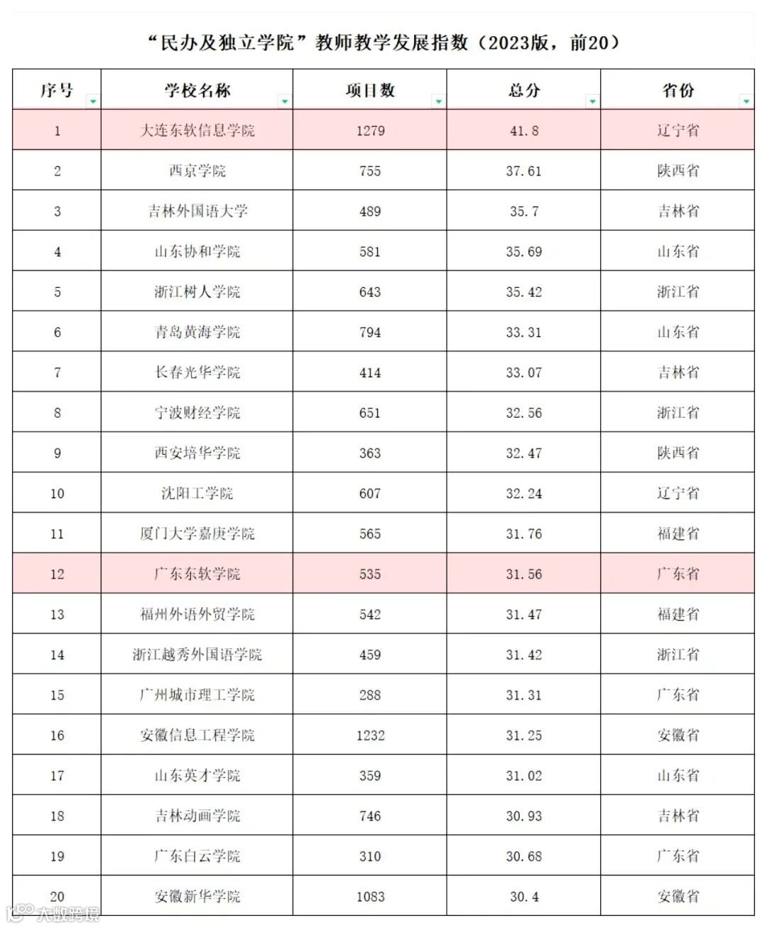 广东东软学院夺得“民办及独立学院”教师教学发展指数(2023版)全国榜单第12名,位列广东省第一!